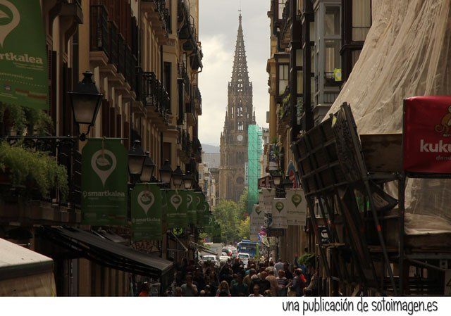 Volvimos a sortear, en esta ocasión caminando, el río por el puente que las galernas destrozaban todos los inviernos y nuestra guía local nos llevó por calles atestadas de gente hasta la Plaza de la Constitución.