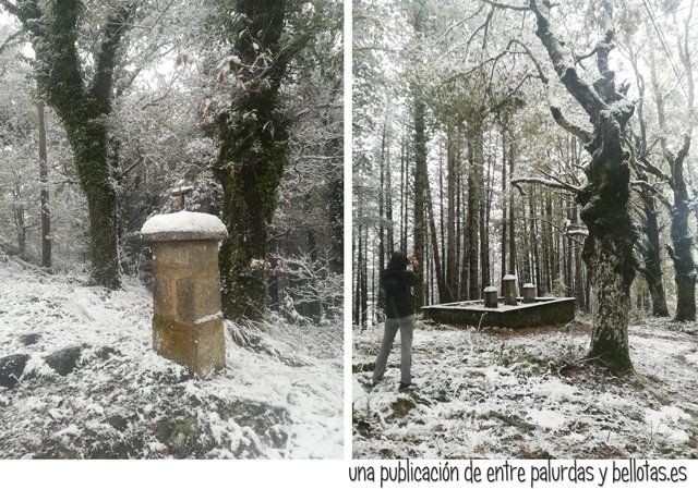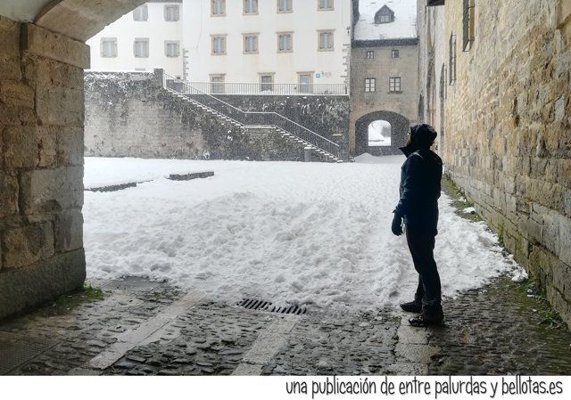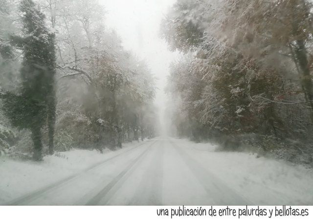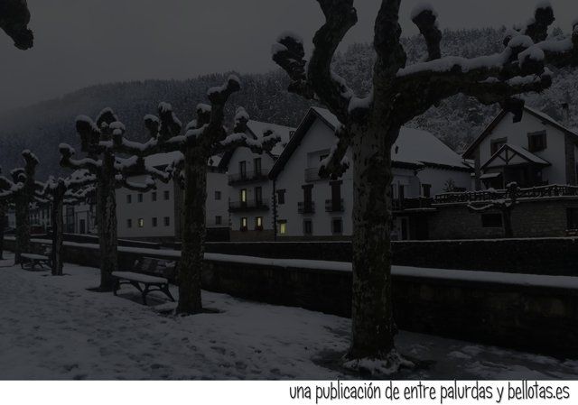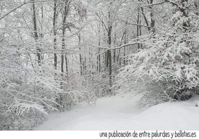 Qué bonita la nieve, qué blancura, qué contraste de luces con aquellos árboles, qué cantidad de copos cayendo cual gráciles plumas, uau… otros más duros te golpeaban los mofletes, uy, qué chuli, qué frío ¿no?