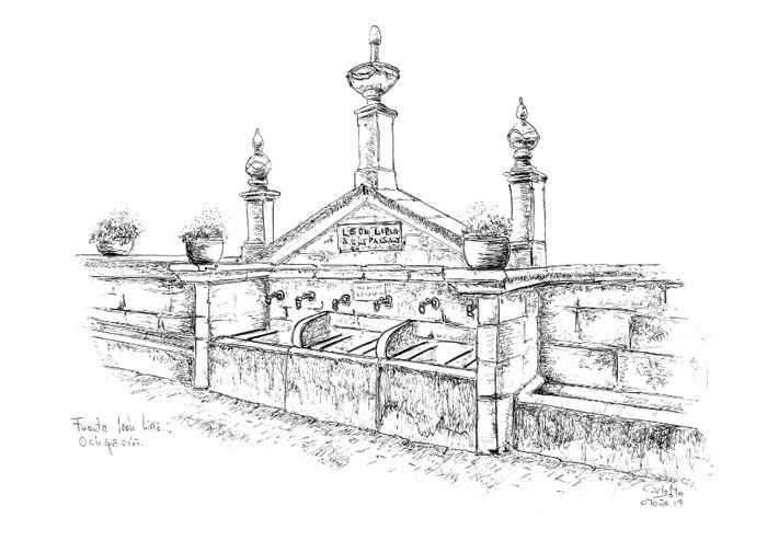 En un lateral del claustro existía una capilla, de San Agustín leímos. De planta cuadrada ornada por bellas vidrieras y en el centro de la sala… un sepulcro. En cuanto lo vi, realzado por aquella tenue luz que se filtraba desde arriba, me encandiló, aquella escena me cautivó de tal manera que me propuse dibujarla en cuanto pudiera. Y así fue..