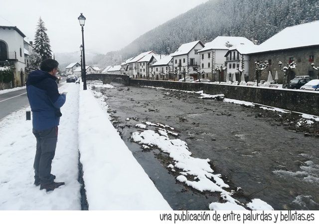 Se distanció un poco, y pensamos en lo que se estaría divirtiendo su conductor a costa de nosotros ¿Qué tienes que hacer cuando tienes una imponente máquina quitanieves pisándote lo talones? ¿Te echas a un lado para dejarle sitio? Como todo está cubierto de nieve ¿hacia dónde te apartas? Y de esto estábamos hablando cuando sin darnos cuenta llegamos a Ochagavia.