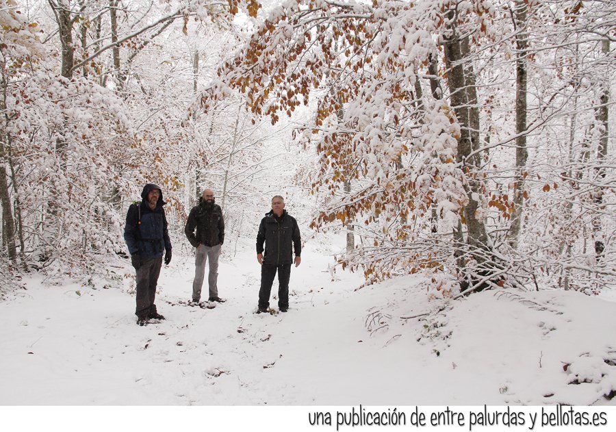 Nadie esperaba unas nevadas tan tempranas. A las hayas, que por estas calendas aún no habían perdido sus hojas, las cogió por sorpresa. Las más jóvenes se doblaban como arco de arquero por el peso de la nieve y a las adultas se le desgajaban gruesas ramas, tal es así que entre tanta nieve y troncos caídos erramos varias veces el rumbo.