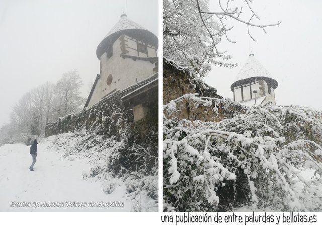 Y las previsiones se cumplieron, no dejó de nevar ni por un instante. La subida a la ermita de Muskilda se convirtió en una de esas salidas al campo que ya no olvidaríamos nunca, un agradable paseo bajo una intensa nevada.