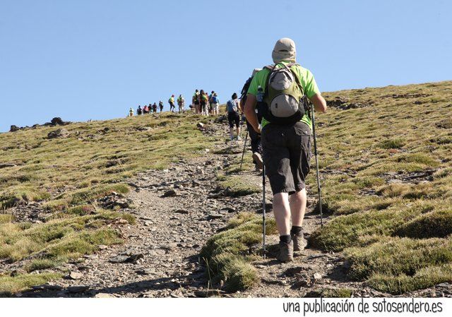 Hemos comenzado la caminata y algunos suben por la ladera como si los llevase el diablo, dios santo. Una línea multicolor de personas señala por donde discurre el sendero en la enorme loma que tenemos delante. El color predominante es el verde fluorescente, alguien que yo me sé diría… “fosforito”
