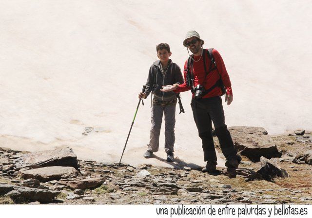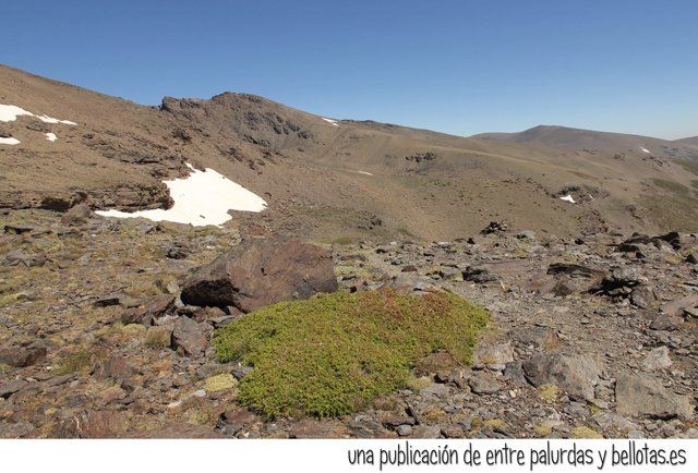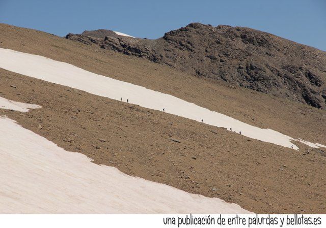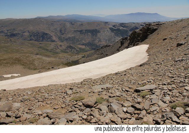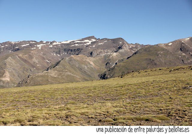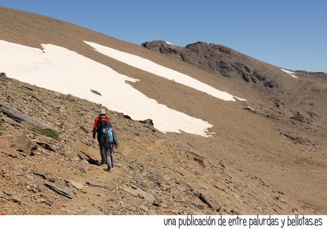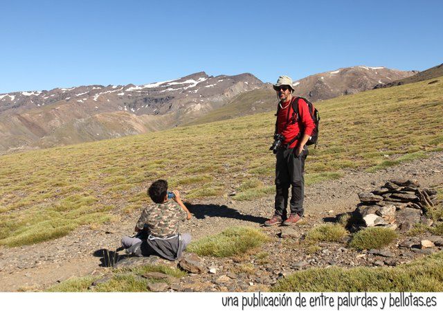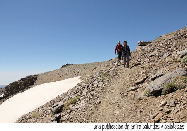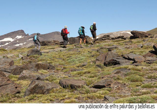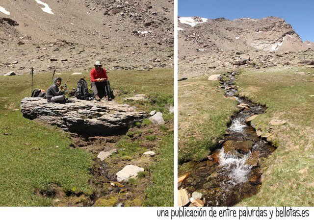 En lontananza el Veleta, ornado de neveros, velaba por nosotros. Su inconfundible silueta resaltaba sobre el azul del cielo. Ahí decidimos hacer un receso y aprovechamos para hidratarnos.