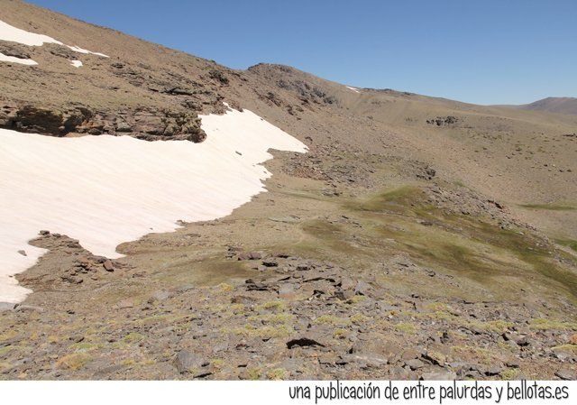 Los neveros que decoraban estas desoladas laderas eran enormes. No es de prudentes cruzar uno de estos con esa pendiente tan acusada, atajar por en medio puede resultar fatal.