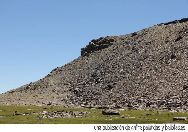 Y tanto tiempo estuvimos en la Laguna Hondera que a punto estuvo hasta de mordernos un perro. Prefiero no contar que allí había un señor supongo que montañero, no sé si “nivel pro”, con tres pe-rri-tos. Y estos lindos canes campaban a sus anchas, batían cual rehala todos los alrededores escarbando como si no hubiera un mañana y en una de esas uno de ellos capturó un roedor que zarandeó con la boca dejándolo inerte sobre el borreguil. Después otro de los lindos perritos comenzó a escarbar por el lateral de una de las enormes piedras que hay en el mismo borregil y hizo un agujero tan profundo que hasta dejamos de ver al lindo perrito. Trincheras. Parque Nacional.