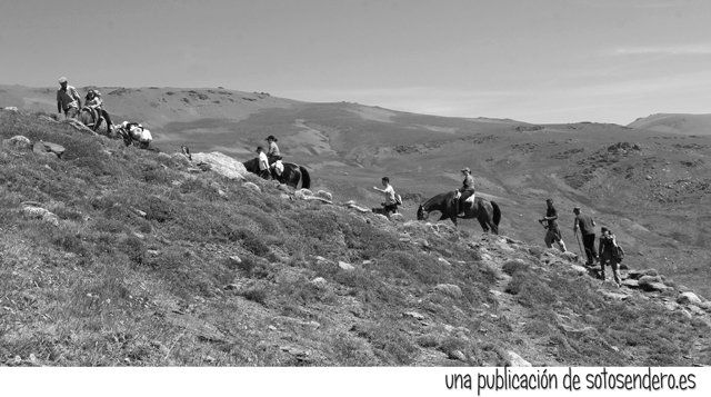 Coincidimos con unas gentes que subían a lomos de bestias a lo más alto de la sierra, al mismo lugar a donde nosotros íbamos. Y el locuaz arriero nos confesó algunos secretos de estos parajes y también nos aconsejó por donde debíamos subir a Siete Lagunas. Nos aseguró que si seguíamos a pie juntillas sus instrucciones y subíamos por donde nos indicaba nos enamoraríamos para siempre de estos parajes, parece ser que al llegar arriba nos aguardaban unas vistas impresionantes.
