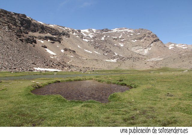 Esa mole de paredes inexpugnables quedó a nuestra derecha y ya no prestamos atención ni a la caída de agua, ni a la hierba fresca que ribeteaba las torrenteras, ni a nosotros mismos. Vadeamos el arroyo de ancho cauce por donde pudimos ya sin miramientos, cual cabra montés, de un salto, y seguimos adelante. Apretamos el paso hasta que llegamos a la pequeña laguna de las Campiñuelas y ahí… nos detuvimos a recobrar el aliento.
