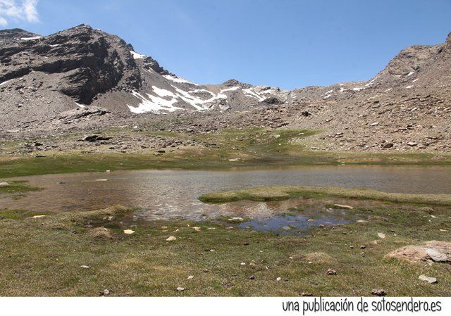 Y antes de emprender el camino de vuelta intenté hacerle una foto a una de las lagunas que hay a los pies del Mulhacén. Intenté que cupiera todo en el encuadre pero no hubo manera, comencé a subir por la ladera alejándome de la laguna para acaparar la escena y cuando creí que casi lo había logrado, disparé.